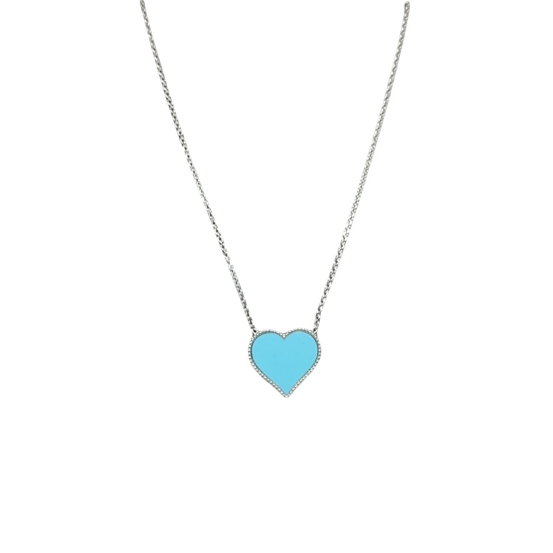 Collana in argento 925 rodiato con ciondolo a forma di cuore da 18 mm in pasta di turchese